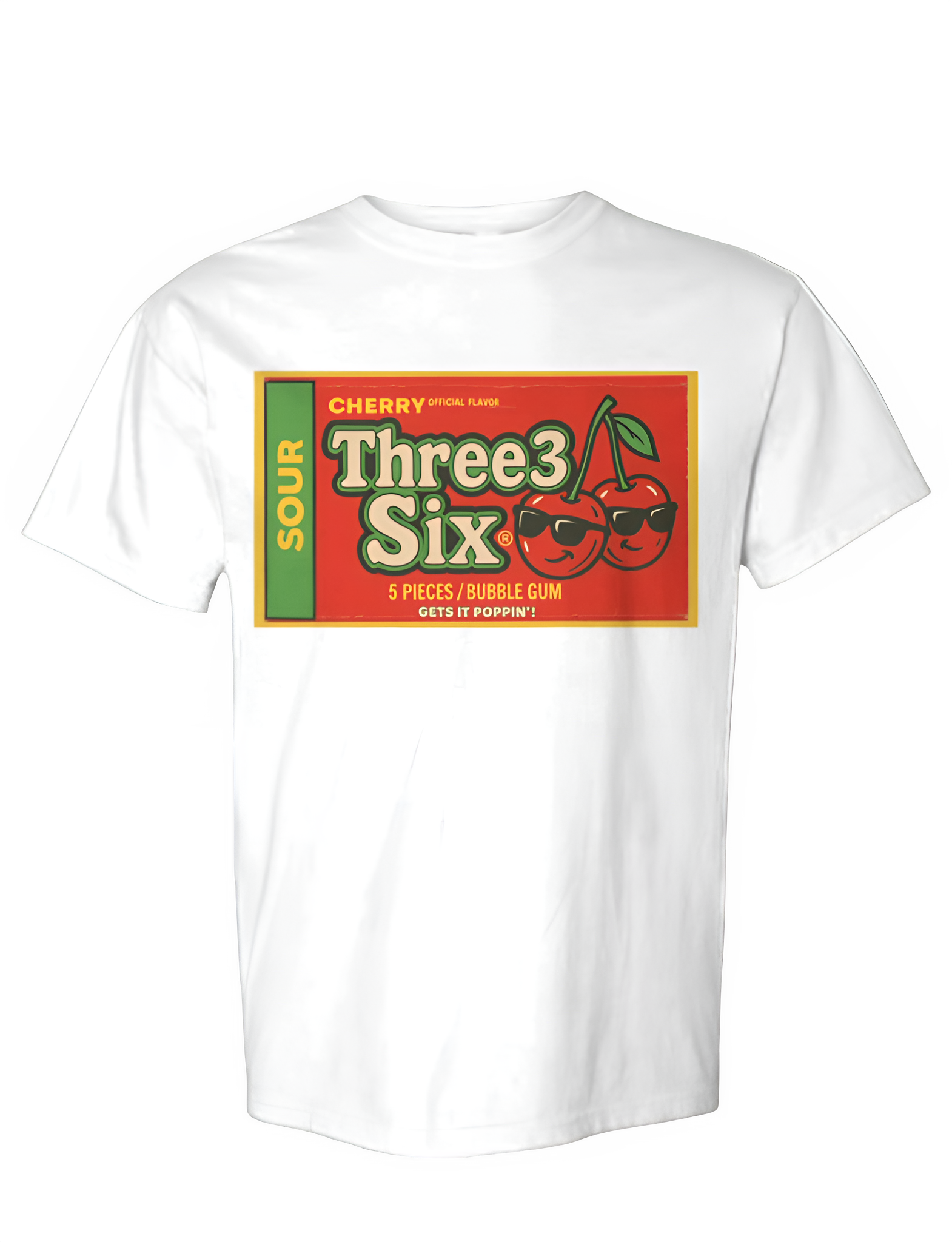 The Three3 Six® Gets it Poppin' Graphic Tee remixes a retro 80s bubble gum wrapper with that unmistakable Three3 Six® original flavor.
